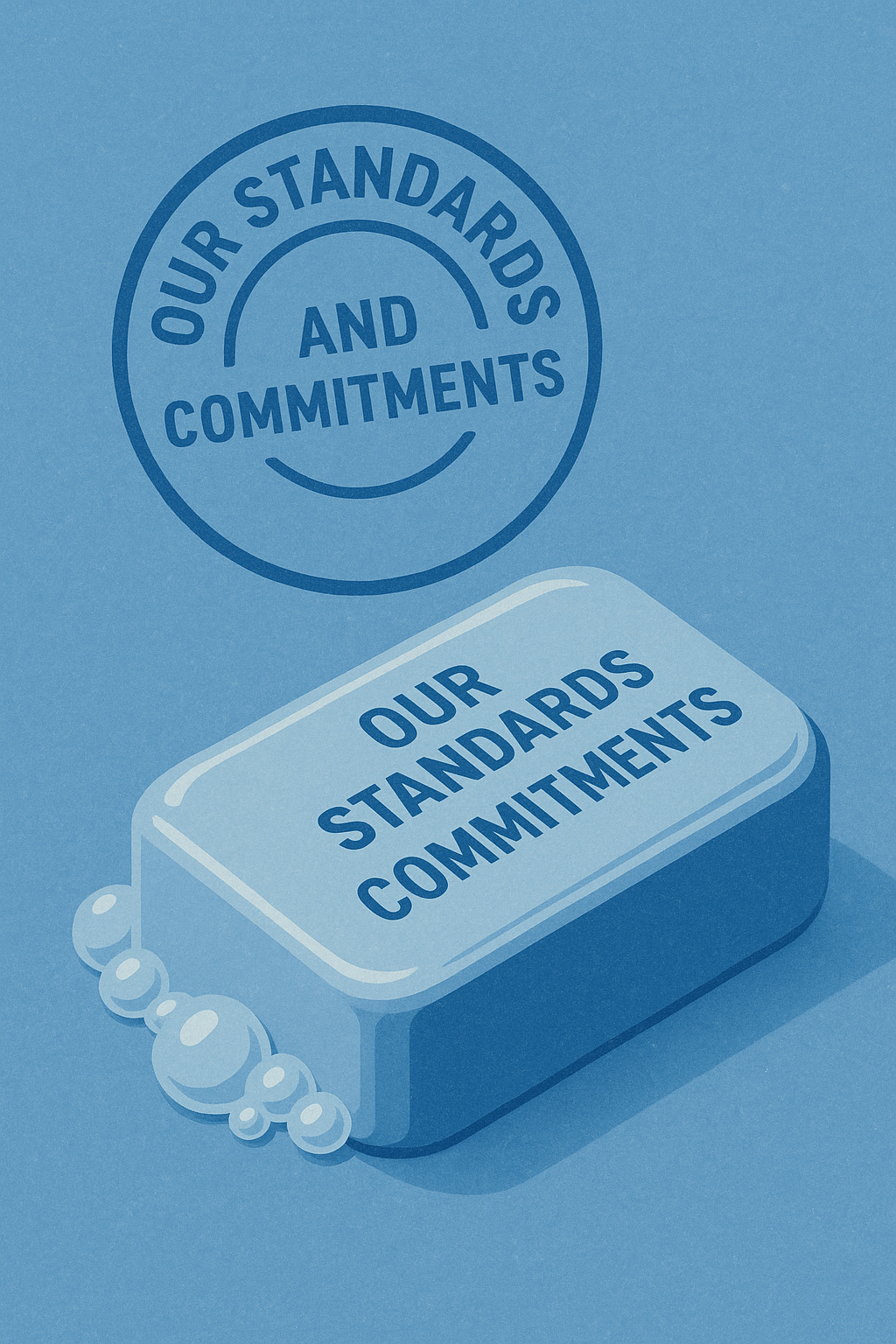 Kami menggunakan sumber daya alam, kemampuan manusia dan teknologi terkini untuk mencapai manfaat terbaik sabun batangan alami bagi konsumen. Kami menetapkan standar tinggi dalam kaitannya dengan praktik bisnis, keselamatan, dan kepedulian terhadap lingkungan. Kami memenuhi tanggung jawab sosial kami dan tidak pernah meninggalkan semangat berinovasi di semua tahap pekerjaan kami. Kami berkomitmen untuk tidak pernah berkompromi dengan standar kami.